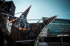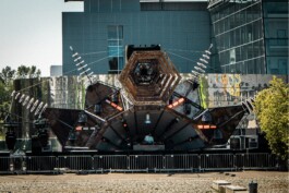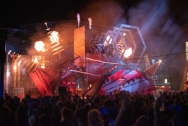 As the festival had to change location, everything was new for us and the whole Kellerkindgang and a challenge of a different magnitude. The main task of this edition was to transform the dearie TU-Campus into a one-day parallel universe of Energy and Extasy to allow the audience to fully transcend reality. In this stage design, no conventional rigging was used and the completely welded construction was fully exposed. To still remind of the universities technical background, the “reactor”-stage should be reminiscent of an old rusted power station, which was supported by flamethrowers and lighting effects. As in other projects, this design had to be portable, reusable and easy to reassemble to further develop it the following year.